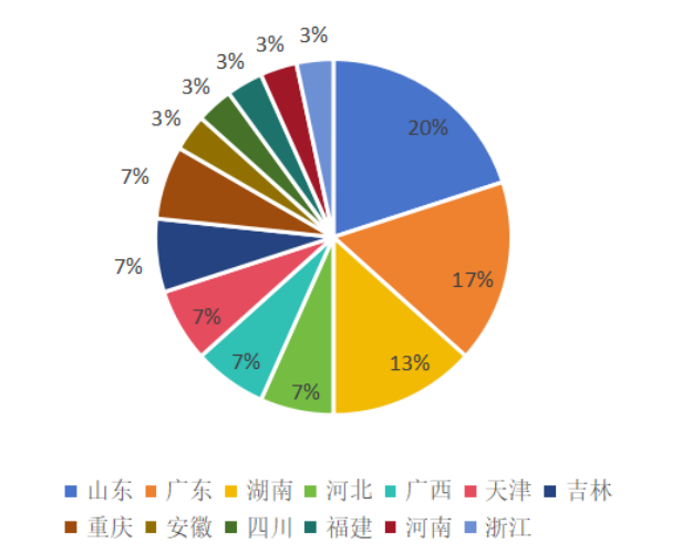 从区域分布看,本次汽车类获奖教材来源广泛、区域分布均衡。第一主编单位覆盖职业本科9所、高职9所、中职院校11所、科研院所1所(见图2)。另有奇瑞控股集团、一汽奥迪销售有限公司、广汽埃安长沙分公司、长安汽车股份扬帆制造厂、麦特汽车服务股份公司、庞贝捷漆油贸易(上海)公司等6家汽车类龙头企业参与编制的教材获奖,形成了产教协同发力、共育英才的建设格局。地域上横跨全国13个省市,既体现了湖南、广东、山东等职教高地的引领作用,也展现了四川、重庆、广西、吉林等西部、东北等地区的汽车专业建设齐头并进的局面(详见图3)。